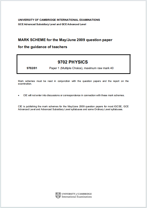 这份 Mark Scheme 是剑桥物理课程 Paper 5 的评分标准,主要用于指导教师和考官评分。Paper 5 作为实验设计与评估试卷,要求学生展示对实验物理的深入理解和实践能力。通过强化实验设计、数据分析和评估能力,学生可以在这类考试中取得优异成绩。