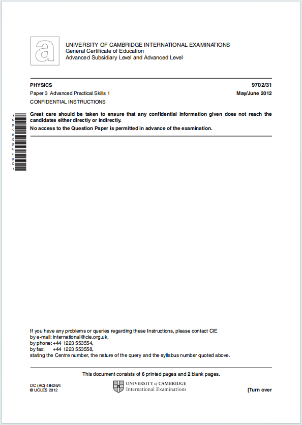 这份试卷是剑桥 A-Level 物理课程的重要组成部分,旨在评估学生的实验技能和科学方法的应用能力。通过充分的实验练习和理论复习,学生可以在考试中表现出色。如果需要具体实验的指导或相关物理原理的解析,请随时提问!
