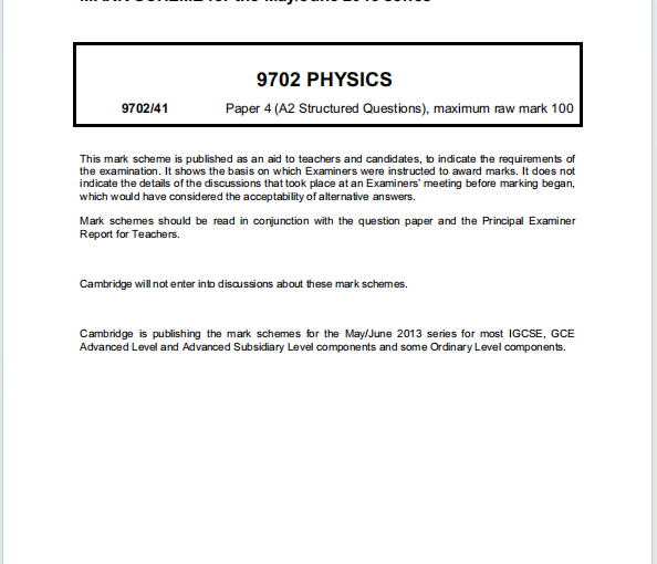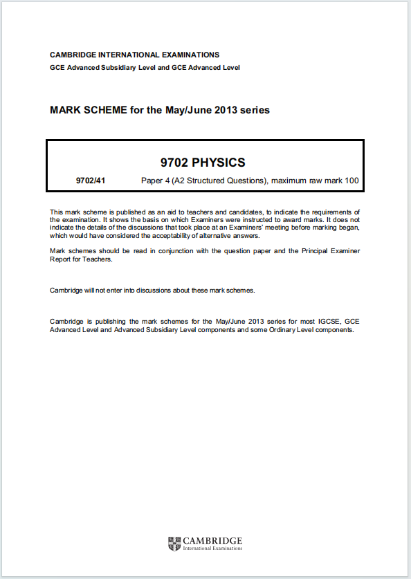 以上就是关于【Alevel剑桥物理2013年真题评分方案下载《Cambridge A-Level Physics Paper 4 A2 Structured Questions Mark Scheme May/June 2013》】的内容,如需了解Alevel课程动态,可至Alevel课程资源网获取更多信息。