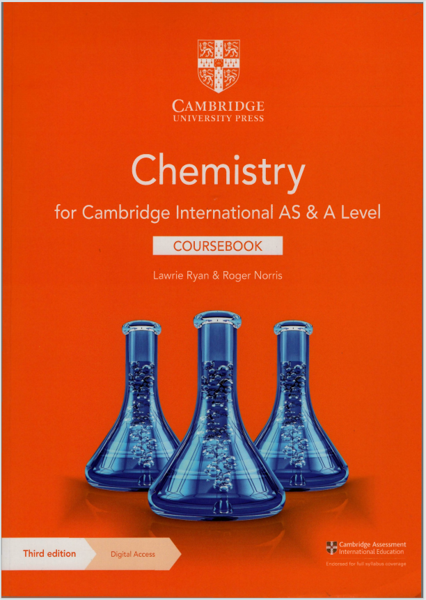 这本教材是 《Chemistry for Cambridge International AS & A Level Coursebook (Third Edition)》,由 Lawrie Ryan 和 Roger Norris 编写,出版方为 Cambridge University Press。它是专门为 Cambridge International AS & A Level Chemistry 课程设计的权威教材,完全符合考试大纲要求,为学生提供全面的化学知识、实验指导和考试准备资源。