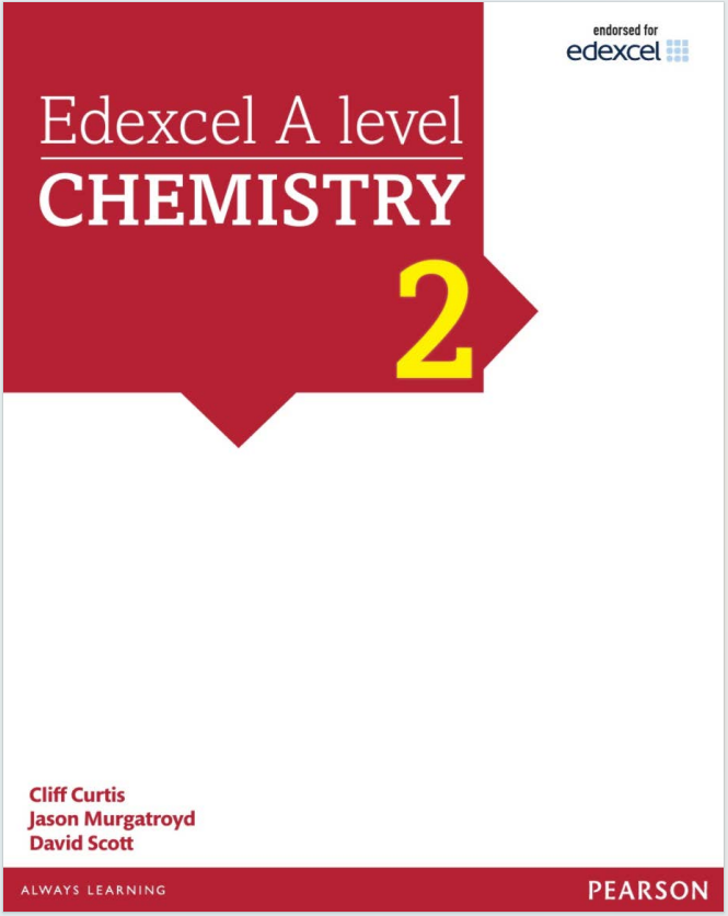 这本书是 《Edexcel A Level Chemistry 2》,由 Cliff Curtis、Jason Murgatroyd 和 David Scott 编写,并由 Pearson 出版。这本教材是专门为 Edexcel A-Level 化学课程设计的第二部分,涵盖了课程的高级内容,旨在帮助学生深入学习化学原理并为考试做准备。