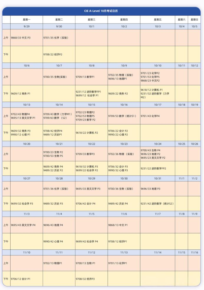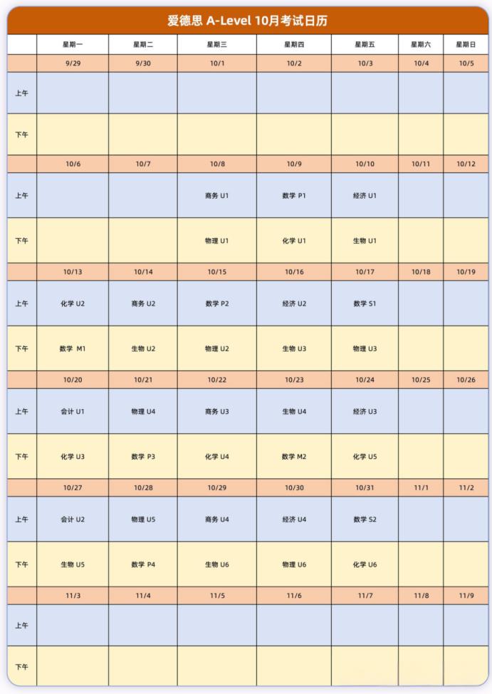 ✅特殊说明:秋季大考使用 “地区卷” 的科目增至 7 门,包括 AS/A2 数学、物理、化学、生物、经济、商务、会计,更贴合国际考生学习进度。