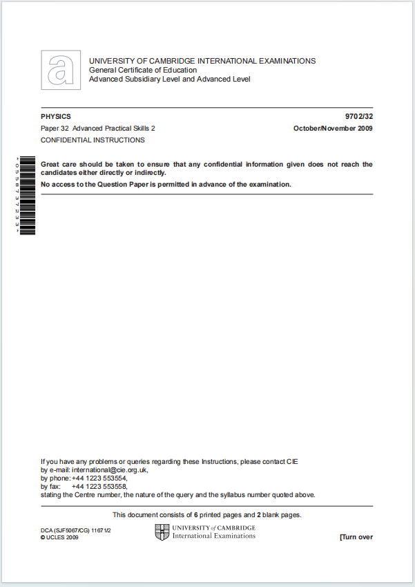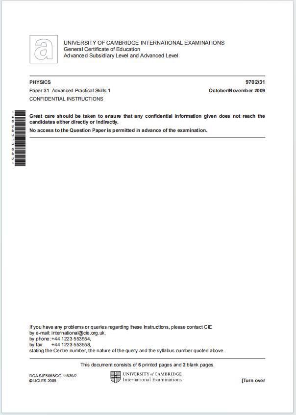 以上就是关于【Alevel剑桥物理2009年真题下载《Cambridge A-Level Physics Paper 33 Advanced Practical Skills 1 October/November 2009》】的内容,如需了解Alevel课程动态,可至Alevel课程资源网获取更多信息。
